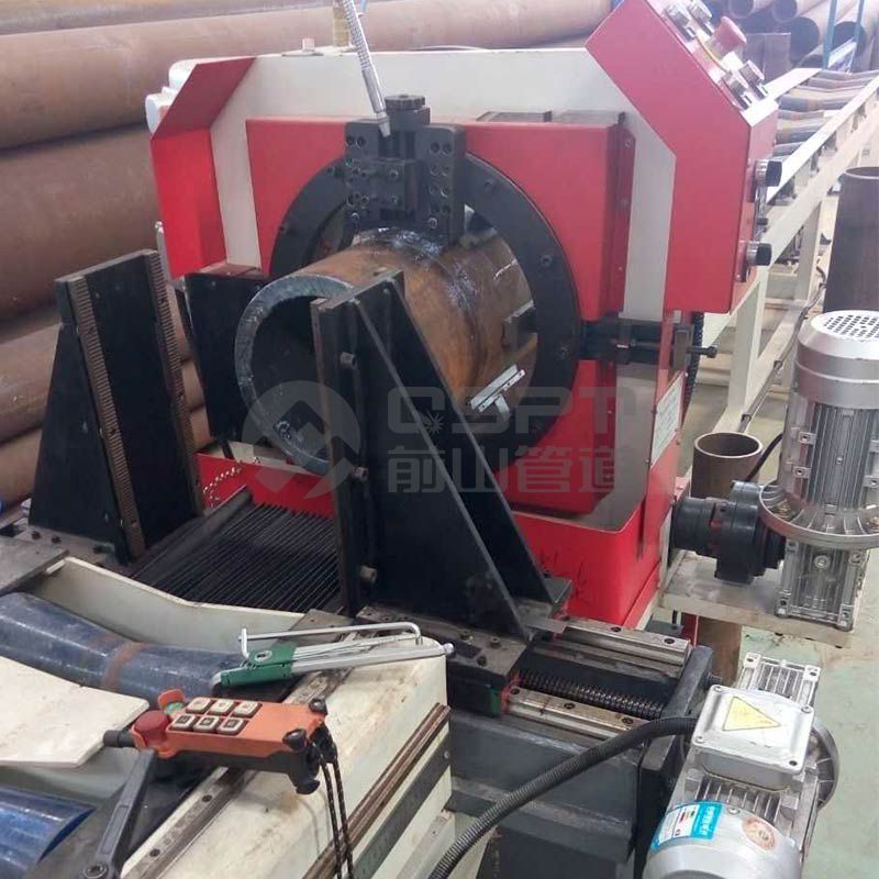 production; pipe single side clamping fixed, cutterhead disc slow rotation, ratchet drive radial cutting feed, the use of high speed steel tool bits processing, the cooling need for cooling liquid, manual or electric lifting and adjusting the height of pipe, manual or electric clamping pipe; Standard configuration of 1 cutting tool, 1 or 2 beveling tools.